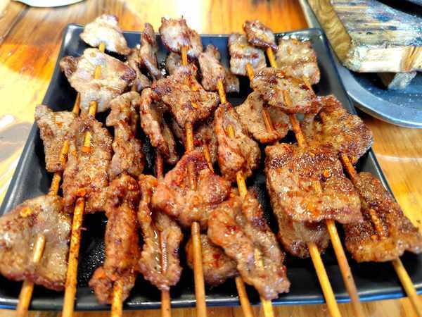 當然,現在服務已經很完善瞭,店裡雇瞭10多個工作人員,前後忙乎;原來是晚上8點以後才能吃到他們傢的燒烤,現在下午6點就可以品嘗瞭,味道還是像30年前一樣的好吃。
