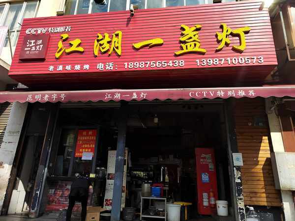 昆明的燒烤種類繁多、口味多樣,世界各地風味皆有:韓式燒烤、巴西烤肉、延邊烤肉、紅河燒烤、昭通小肉串、文山燒烤、版納烤雞等等,琳瑯滿目;而作為老昆明風味的燒烤,江湖一盞燈絕對是時間最長、影響最大、最出名的的杠把子,偷用他們傢名字的燒烤店也時有出現。