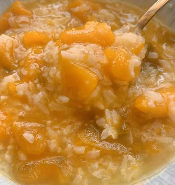 ②鍋中放入適量清水,水開把小米南瓜大米放入鍋中煮半小時左右,加適量糖煮半小時左右,熬至黏稠即可出鍋