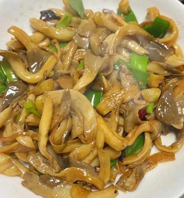 ③鍋中放入適量油,放入蔥蒜幹辣椒爆香,倒入蘑菇快速翻炒,加一勺生抽,一勺老抽,一勺蠔油,適量鹽,翻炒均勻即可出鍋