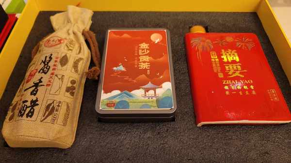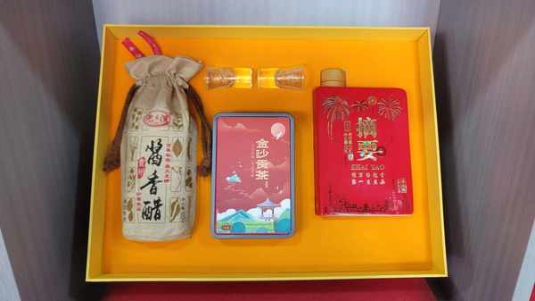 “金沙醬香酒”。早在清光緒年間,金沙所產白酒就有“村酒留賓不用賒”的贊美詩句。曾有金沙張傢與茅臺華傢聯姻,張姓少東傢迎娶華傢千金張華氏,兩大傢族結成的商業及釀酒聯盟。上世紀三十年代,茅臺釀酒大師劉開庭引入茅臺大曲醬香工藝,釀造金沙美酒。1951年,金沙政府在原來幾傢酒坊的基礎上,組建貴州金沙窖酒廠,劉開庭再次受聘擔任釀酒總技師,沿用最傳統的回沙醬香工藝,釀造醬香型金沙酒,並概括出“12987”的釀酒數字口訣,即經過百年歷史沉淀,金沙回沙酒發展成為貴州第二大酒業集團、中國第二大醬酒基地,成為瞭名符其實的“貴州二茅臺”。