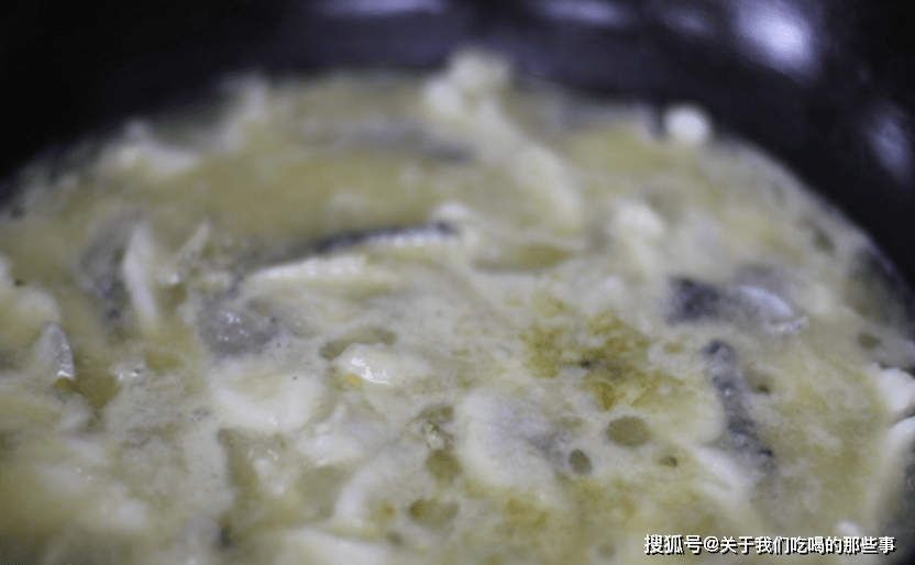 6、想讓魚湯變得濃白,教大傢一個妙招,蛋黃加入八倍的清水攪拌均勻,淋入鍋中即可,魚湯就會立刻變白,是不是很神奇?把煮好的魚片放在酸菜上,魚湯倒入菜盆中。