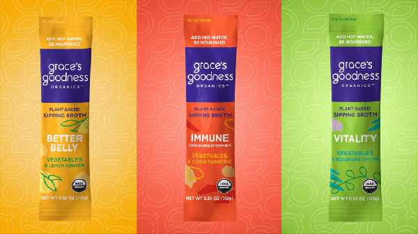 除瞭蔬菜汁,國外還出現一些比較“有意思”的產品,比如Grace's Goodness的即飲蔬菜湯,這是一款純植物基即飲湯,含有蔬菜、保健藥草、營養酵母和 MCT(中鏈甘油三酯)等簡單有機成分,條狀設計方便攜帶,隻需用熱水沖泡即可飲用,隨時補充能量與活力。而且該產品也可與大多數食物混合食用,例如與果汁混合,或添加到沙拉、主菜等中。