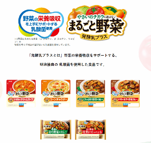 除瞭瓶裝酸奶以外,明治還在其預制菜食品中增加瞭含有此酸奶的“全植物發酵乳Plus”系列,涵蓋咖喱、湯及冷凍食品三大類,共有番茄奶油、玉米海鮮湯;多彩蔬菜、番茄茄子蔬菜咖喱以及咖喱蔬菜、蔬菜通心粉6款產品,用更簡單的方式輔助人們在日常飲食中充分攝入蔬菜營養。