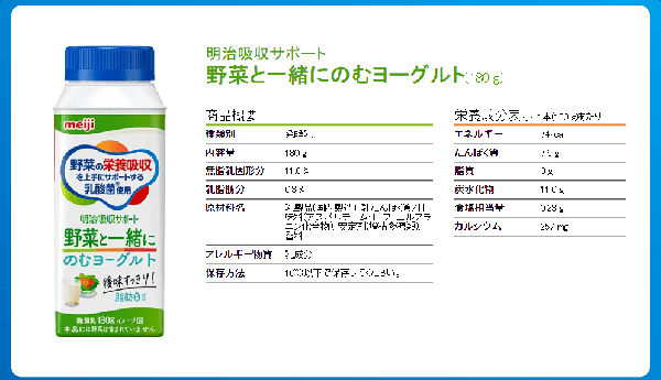 與其他酸奶產品不同,新品的重點並不在於腸道健康,而是著眼於蔬菜中所含營養素的吸收效率,並建議在吃飯時與蔬菜一起服用,進而達到將蔬菜營養最大化攝入的目的。