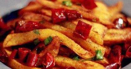 材料:土豆、食鹽、薑、蒜、幹辣椒、小蔥、植物油、花椒粉、辣椒粉、孜然