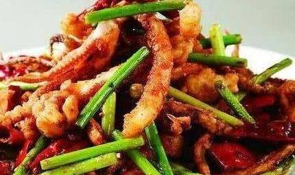 做法:1、 將魷魚須洗凈切成段,焯一下,水瀝幹;