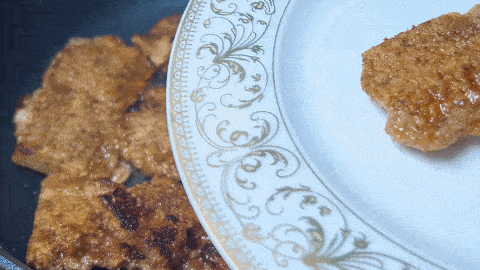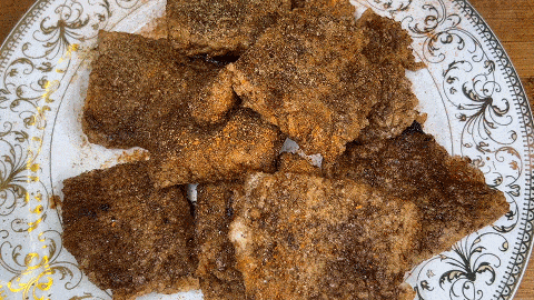 6. 待兩面都煎至金黃即可撿出到盤中,撒上辣椒粉