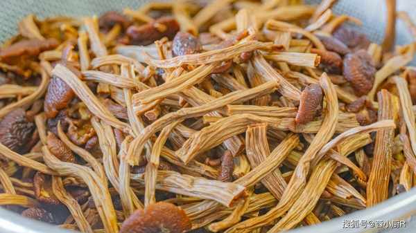 1、先準備一包幹菌菇,這個裡面的菌菇比較多,各種品類都有一點,分別是蟲草、海鮮菇、杏鮑菇、秀珍菇、鹿茸菇、姬松菇、羊肚菌。打開後加溫水先泡30分鐘,把幹菌菇泡軟一些。