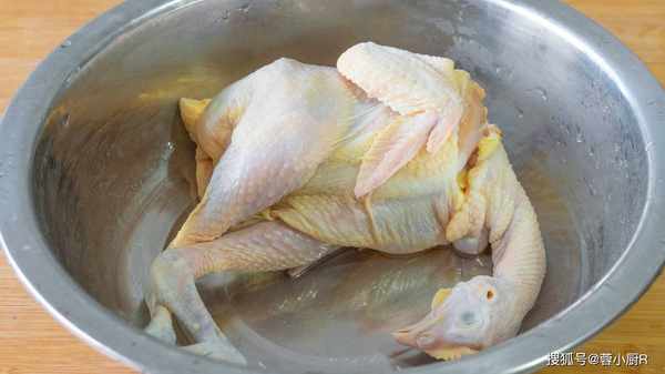 3、接著來處理雞肉,三黃雞一隻,先清洗幹凈。