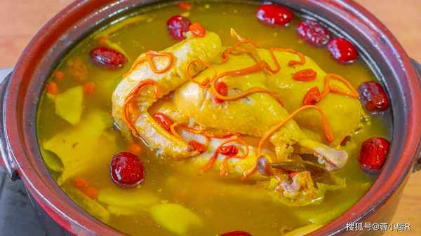 食材清單:三黃雞1隻、幹菌菇1包、大蔥、生薑、料酒、鹽、紅棗、枸杞