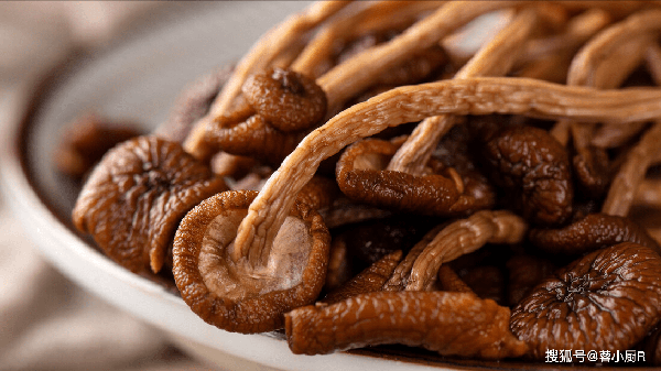 6、這時候我們來看一下菌菇,已經全部泡好瞭,擠幹水分後先放一旁。雞湯熬半個小時後倒入菌菇,蓋上轉小火繼續煮半個小時。