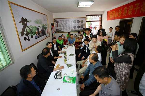 參觀鄂州市國有沼山林場機械制茶車間後,沼山茶葉新茶品鑒會開始,品鑒專傢與會嘉賓品嘗沼山新茶,並由專傢點評。