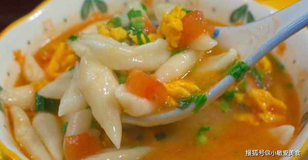 7、倒入煎好的雞蛋,加入鹽,味精、胡椒粉簡單調味,最後撒上一些青菜葉,蔥花,攪拌均勻就可以出鍋瞭,山藥面魚湯就做好瞭。