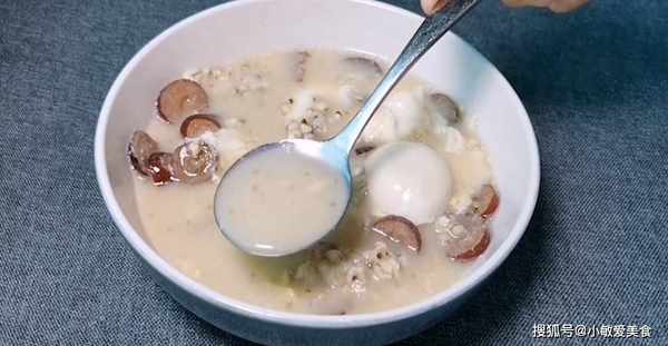 6、時間到,燉好之後放少量的食用油,再放點食用鹽調下味,這樣的燉湯非常適合所有的女性朋友,隔三差五的可以來一碗,對身體很有好處。