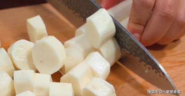 1、去皮洗凈的山藥切成小段,切好後盤中,水開上鍋蒸20分鐘。