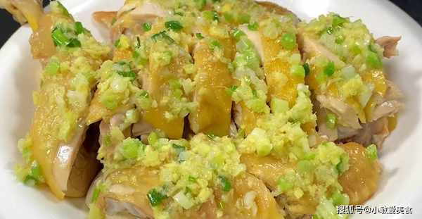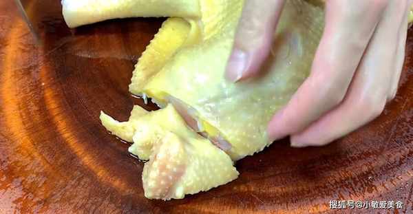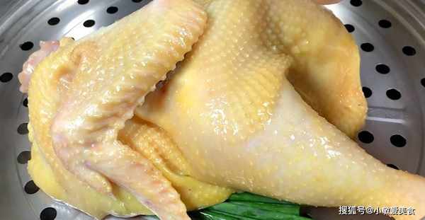 7、雞肉蒸好後把蓋子打開,想要知道雞肉熟瞭沒有,可以用一根筷子紮進雞肉裡面,如果沒有血水冒出來就證明熟瞭。然後把雞肉拿出來放在盤子裡面放涼,放涼後再把雞改刀切成小塊,裝入盤中,淋上準備好的料汁,一道香噴噴的隔水蒸雞就做好瞭。