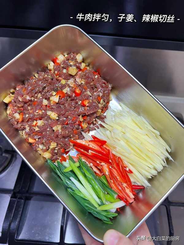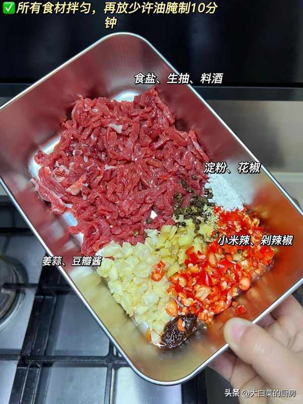 按照如下圖所示的方式將牛肉進行醃制10分鐘!