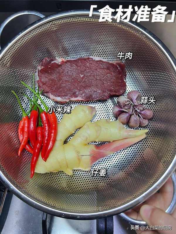 今天就給大傢分享下這道仔薑炒牛肉,首先我們準備如下圖所示的食材: