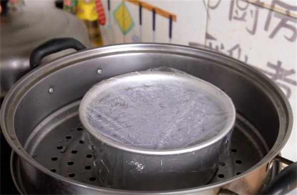 5.上面扣一個盤子,或者是封上保鮮膜,涼水上鍋,燒開之後蒸上30分鐘。