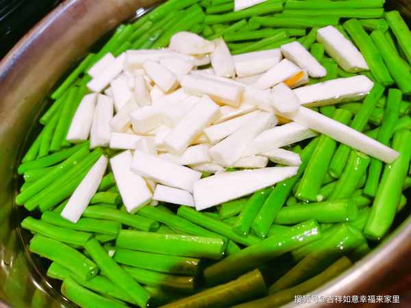 把豆角清洗幹凈後,切段,茭白削皮洗凈後切條,面筋清洗幹凈後切塊,豬肉清洗幹凈切片,所有食材準備好瞭後放入盤中備用,鍋中放油,油熱後,放入肉片,炒至肉片焦黃後,放入豆角和茭白、豆芽、面筋,放入燉煮料包,加入鹽、生抽、老抽、蠔油即可,炒至斷生後,加入熱水燉煮即可。