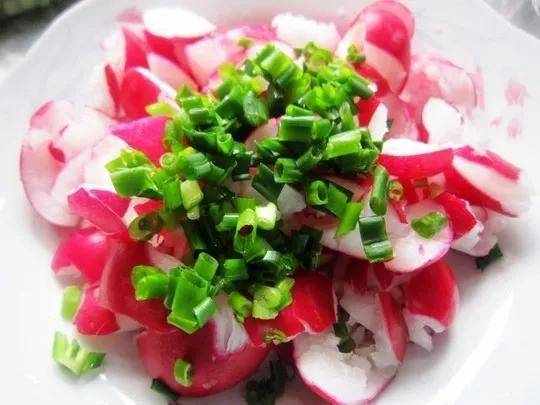 (1)將小水蘿ト洗凈,斜切成薄片,放盤中,加入精鹽醃一會兒。