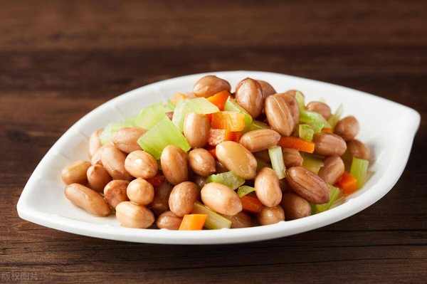 (3)將花生米、胡蘿ト、芹菜放入盤內,加入精鹽、味精、辣椒面、香油拌勻即成。
