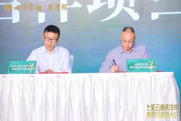 上午活動接近尾聲時,現場進行瞭一項特別的簽約儀式,為雲茶發展深度聚焦,深化規劃研究與產業合作,最大程度實現七彩雲南慶灃祥茶業股份有限公司初心,“讓雲南茶走向世界,讓世界愛上雲南茶”的企業願景。