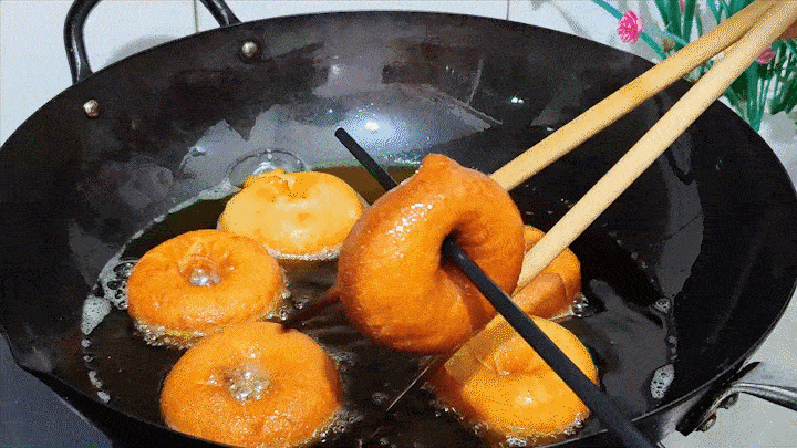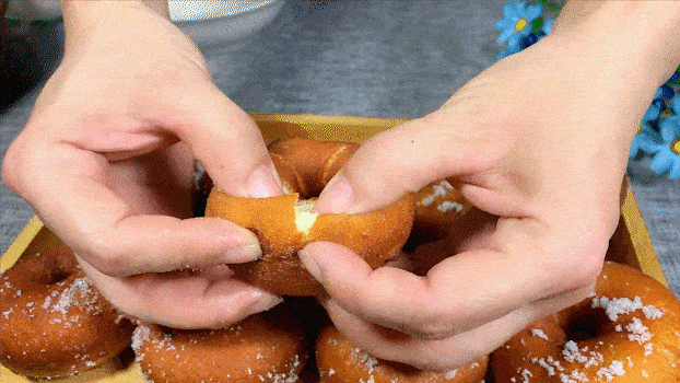 原料也十分簡單,攪在一起攪拌攪拌,不需要烤箱,放油裡面炸一炸,外面金黃酥脆,裡面一點也不輸面包,蓬松程度可以達到最大化。