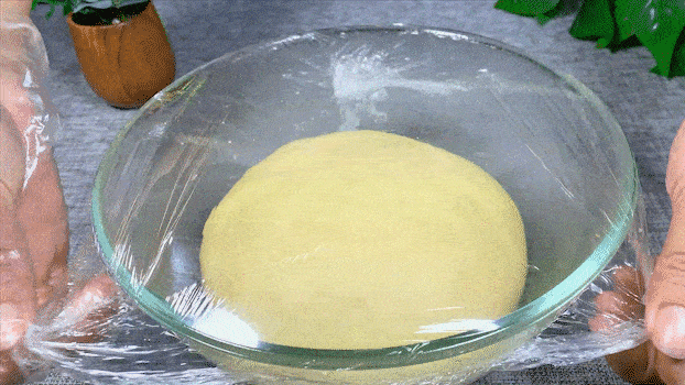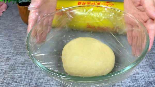 5.揉一下如果還感覺粘手的話,可以再加點食用油,這個辦法很靈,而且表面會越來越光滑,也會很細致。這樣就可以進行第一次醒發,蓋上保鮮膜,醒發至2倍大,我這裡氣溫20多度,醒發瞭一個小時左右。