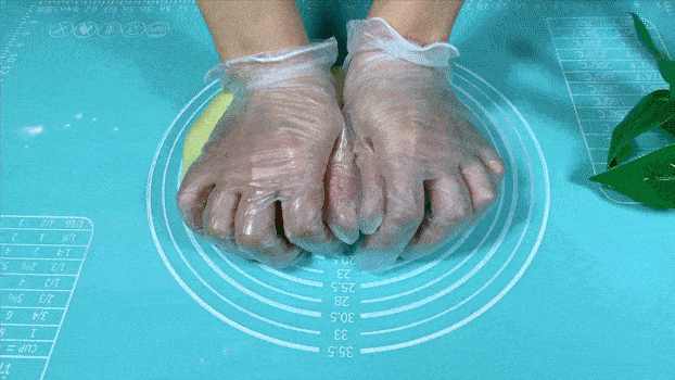 7.把面團給它請出來,面墊上給它撒點粉,面團移到面墊上,再次給它揉搓排氣。揉瞭差不多3分鐘就可以。
