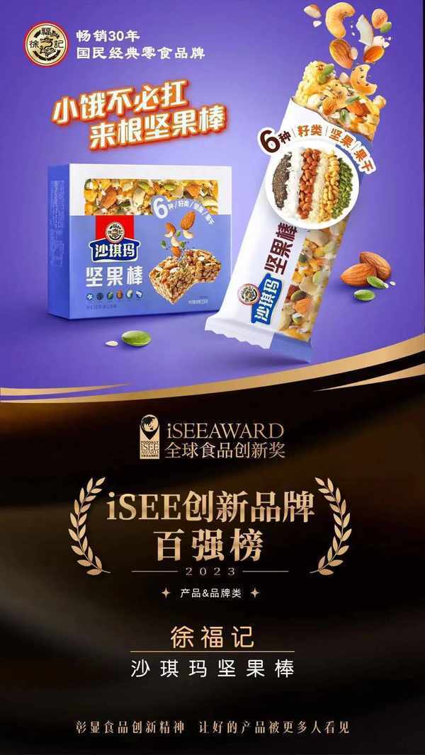 因此,徐福記也得到瞭多方認可,其沙琪瑪堅果棒和趣滿果兩款產品就在近期晉升2023年“iSEE全球食品創新品牌類百強榜”, 而iSEE全球獎被認為是食品行業的創新風向標。不僅如此,徐福記還曾獲得包括“烘焙食品領軍企業”“優秀休閑食品創新企業”“中華糕餅領袖品牌20強”等多項行業榮譽。
