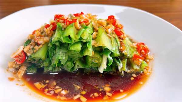 準備食材:油麥菜、大蒜、小米辣、生抽、鹽、糖