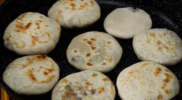 8、鍋中刷一點油,放入餅,小火慢煎至一面變色,再翻面煎,直到把兩面都煎到金黃酥脆,脆香脆香的。