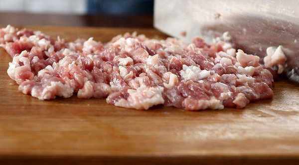 2、豬肉剁成肉糜,放入碗中,倒入適量的料酒鹽和白胡椒拌勻。