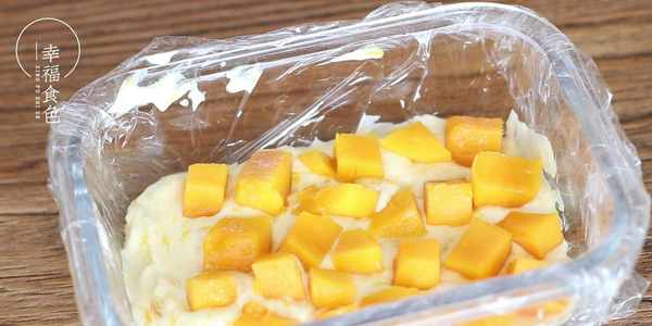 芒果粒適量,酸奶45克,淡奶油50克,芒果醬30克)