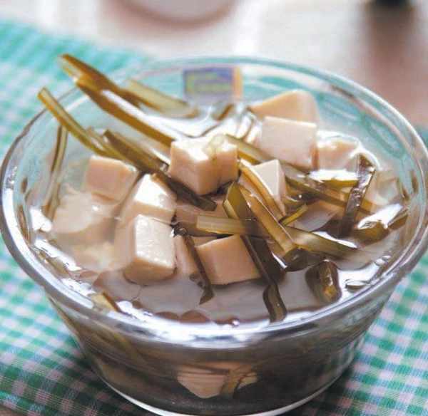 原料 豆腐 3 塊,水發海帶 100 克。
