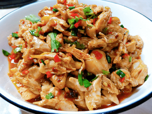 沒胃口的時候來上一盤涼拌手撕雞準沒錯,麻辣鮮香,一個人就能炫光,非常適合減肥期的姐妹,低脂低卡,一碗料汁輕松搞定。