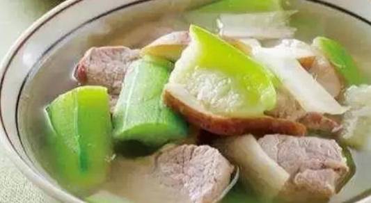 食材:絲瓜、排骨、豆腐、蒜、淀粉、濃湯寶、鹽、蠔油、醬油