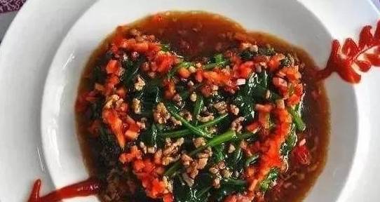 材料:菠菜、瘦肉、薑、蔥、蒜、鹽