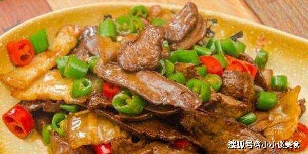 7、咸豬肝洗凈,去鹽調水,加入豬肝炒至熟透,倒入清水。