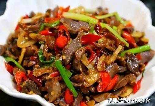 6.鍋裡多放油,燒熱,放入醃制好的雞肚翻炒片刻,變色後撈出