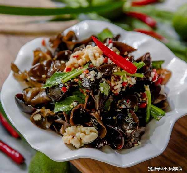 材料:黑蘑菇20克,大蒜2瓣,幹辣椒1條,香菜適量,小辣椒適量,醬油2湯匙,香醋1湯匙,香油1湯匙,少許糖、鹽少許、炒好的芝麻、橄欖油適量;