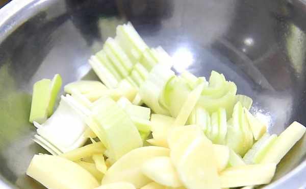 準備生薑一塊,切成薑絲備用。