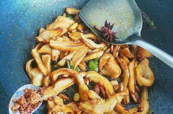 鍋中倒入適量的色拉油,燒至七成熱的時候,首先將蔥和生薑放入色拉油中煸炒出香味。接著將,九成熟的豬肚加入鍋中,繼續翻炒,這個時候加入食鹽和醬油,攪拌均勻。然後再加入適量的辣椒粉和八角,繼續翻炒食豬肚,更香更入味。豬肚炒入味的時候再將,洋蔥辣椒塊放入鍋中,繼續翻炒,然後加入撈汁調味。到時候產城大火爆炒幾下,炒至洋蔥變軟的時候就做好瞭。