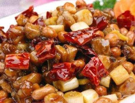 1.宮保雞丁:宮保雞丁選用雞肉為主料,佐以花生米、黃瓜、辣椒等輔料烹制而成。紅而不辣、辣而不猛、香辣味濃、肉質滑脆。由於其入口鮮辣,雞肉的鮮嫩配合花生的香脆。宮保雞丁是漢族傳統經典的名菜,屬川菜名菜。後來此道菜也被歸納為北京宮廷菜。這道飯菜,紅而不辣、辣而不猛、香辣味濃、肉質滑脆。相信大傢在去飯店的時候也經常會吃到宮保雞丁這種美味,畢竟面對如此誘人的美食,很受有人能忍住不吃的。