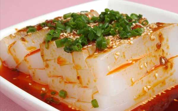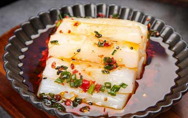 配方:豌豆淀粉1碗、涼水6碗、大蒜、生薑、香菜、花生碎、黃瓜絲、生抽、醋、雞精、辣椒油