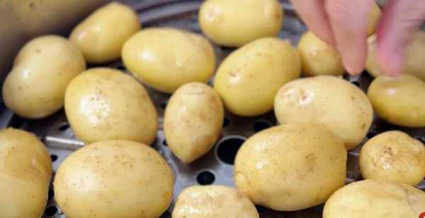 4、土豆蒸好後用一根筷子戳一下土豆,能輕松戳進去就是蒸好瞭。