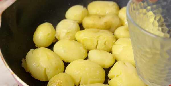 7、找個杯子輕輕地壓一壓土豆,壓成土豆餅,這樣更有利於入味。