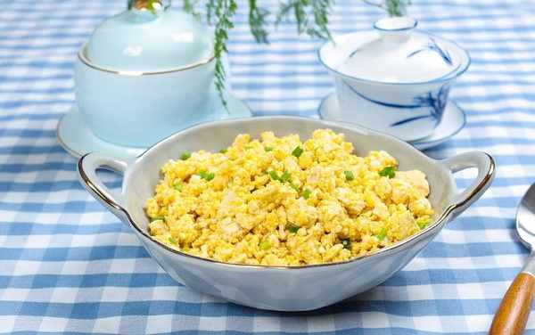 老豆腐、豌豆、玉米粒、胡蘿卜丁絲蔬菜搭配在一起,解饞飽腹的同時,也可能會有米飯類似的口感,同時也要做好控制好食用油的使用量和食鹽的使用量。